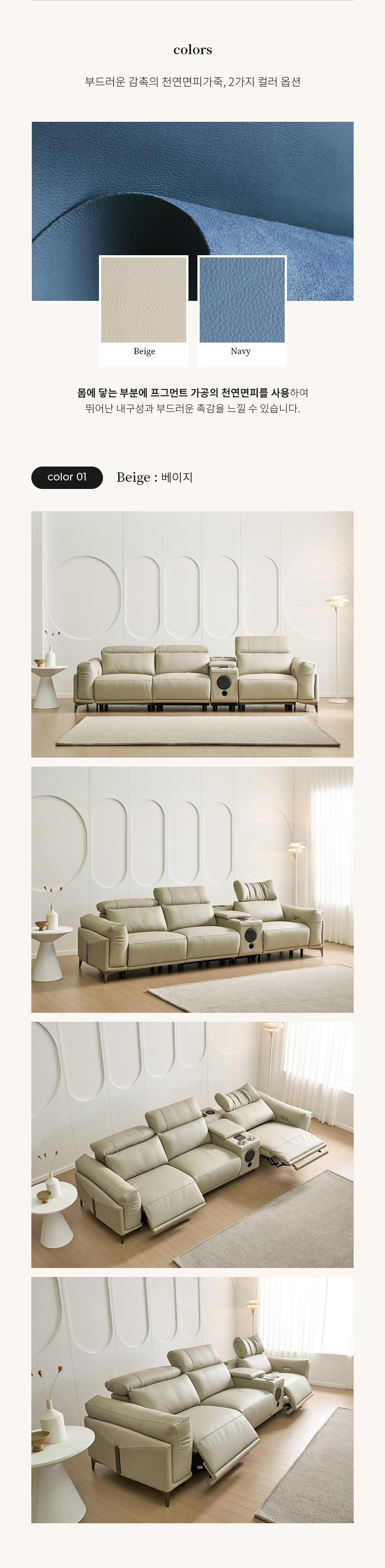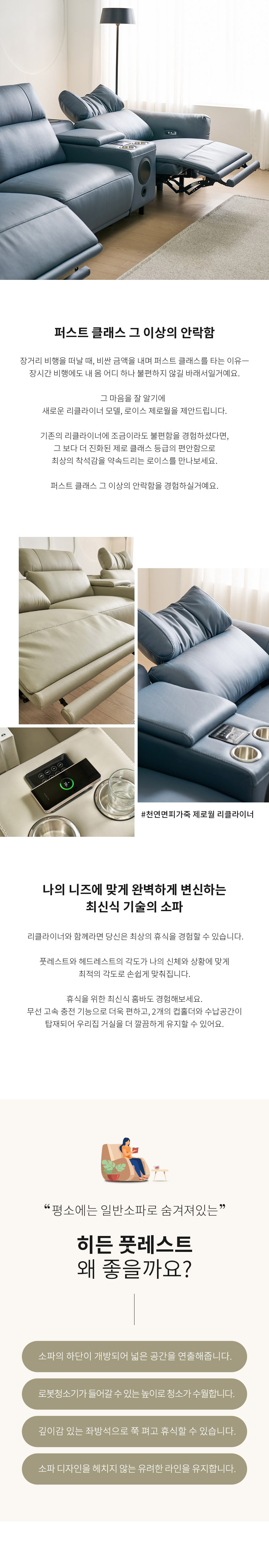 후잔트 천연면피 소가죽 4인용 제로월 전동 리클라이너소파