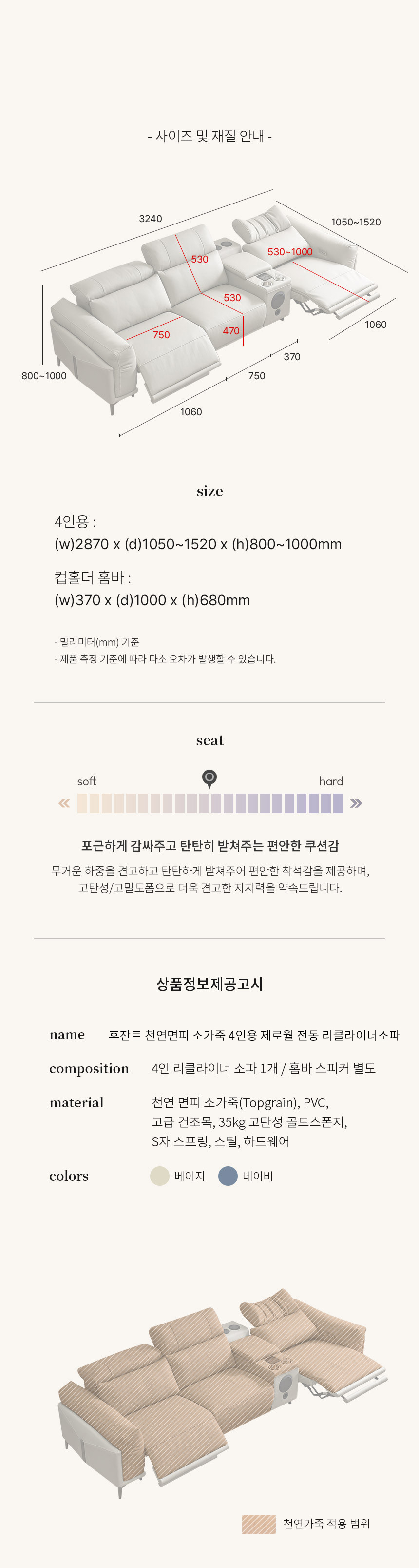 home > 소파 > 4~6인용 > 후잔트 천연면피 소가죽 4인용 제로월 전동 리클라이너소파