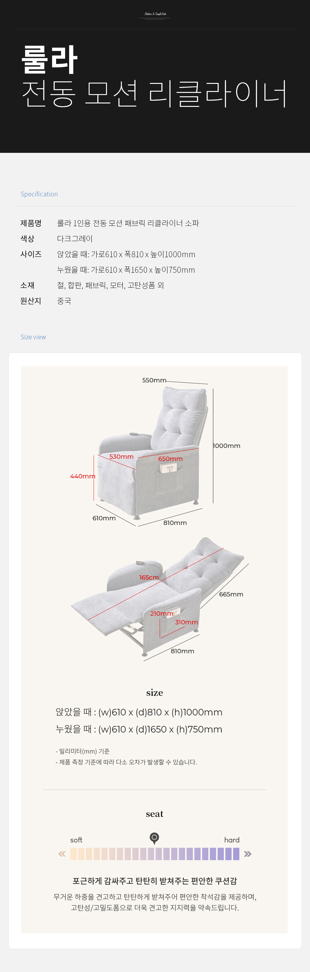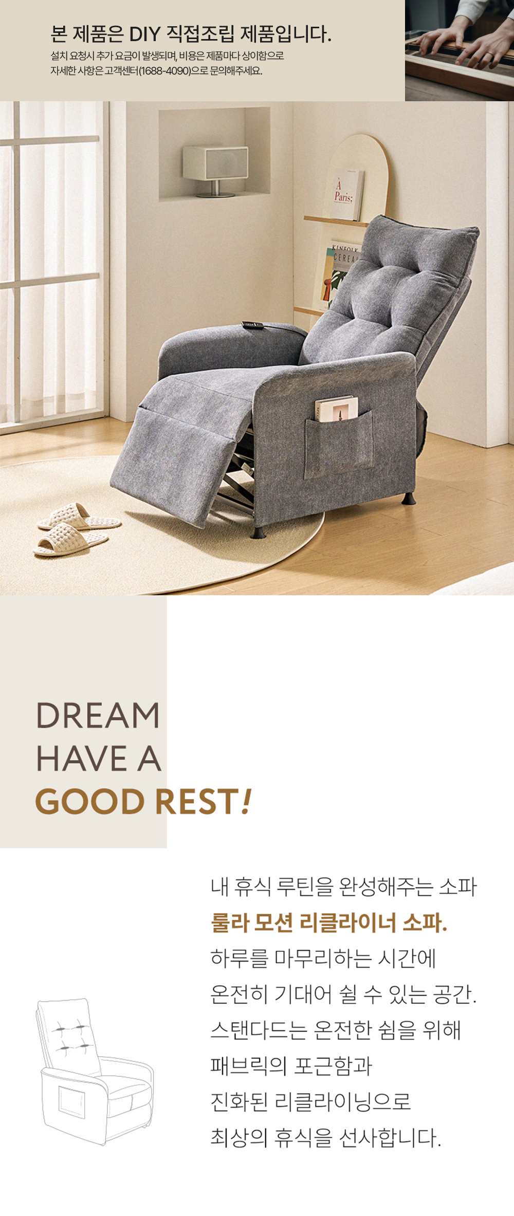 home > 소파 > 리클라이너 > 1인 리클라이너소파 > 룰라 1인용 전동 모션 패브릭 리클라이너소파