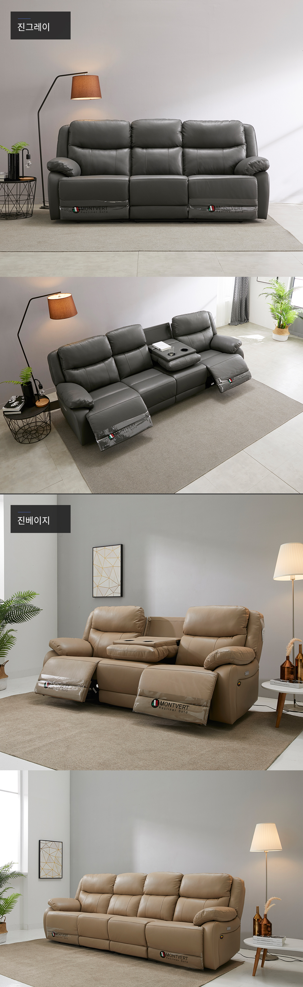 home > 소파 > 리클라이너 > 4인 리클라이너소파 > 줄리아 3인, 4인 전동 리클라이너 가죽소파(제로월)