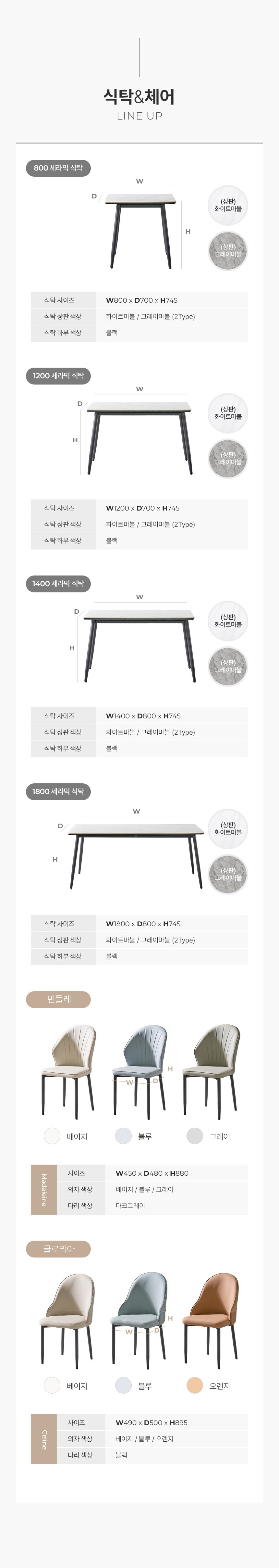 아벨 2인/4인/6인 통세라믹 식탁세트
