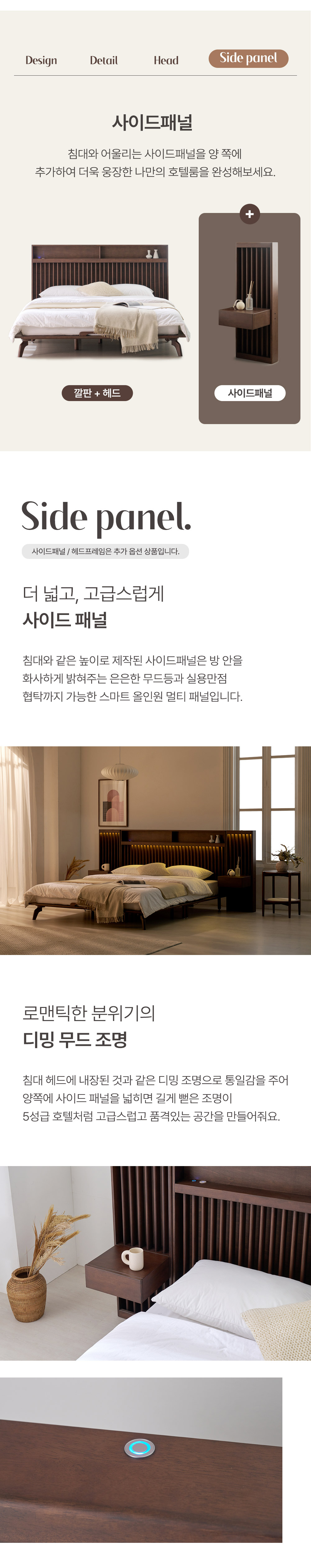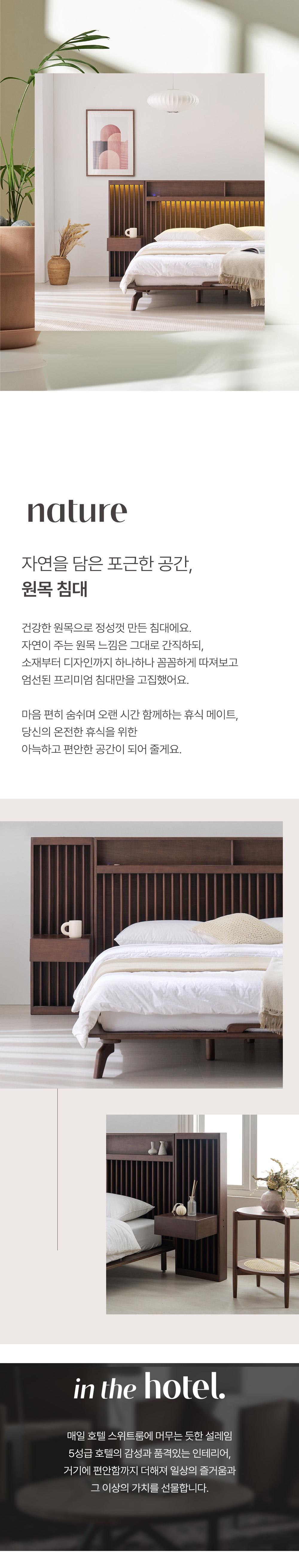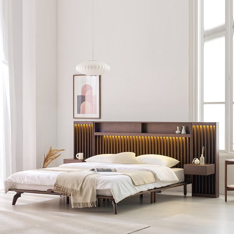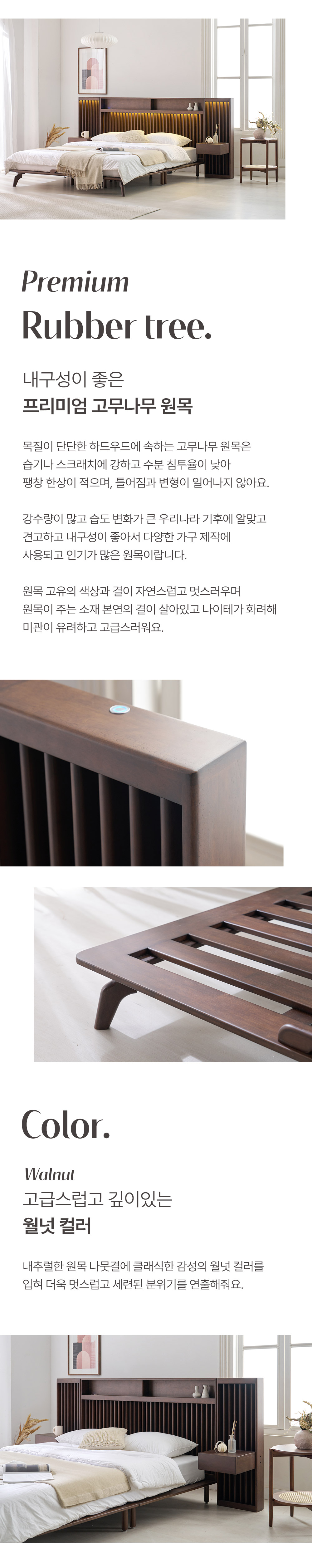 home > 원목가구 > 침대 > 퀸침대 > 로즈마리 갤러리 LED 고무나무 원목 Q/K, LK 침대