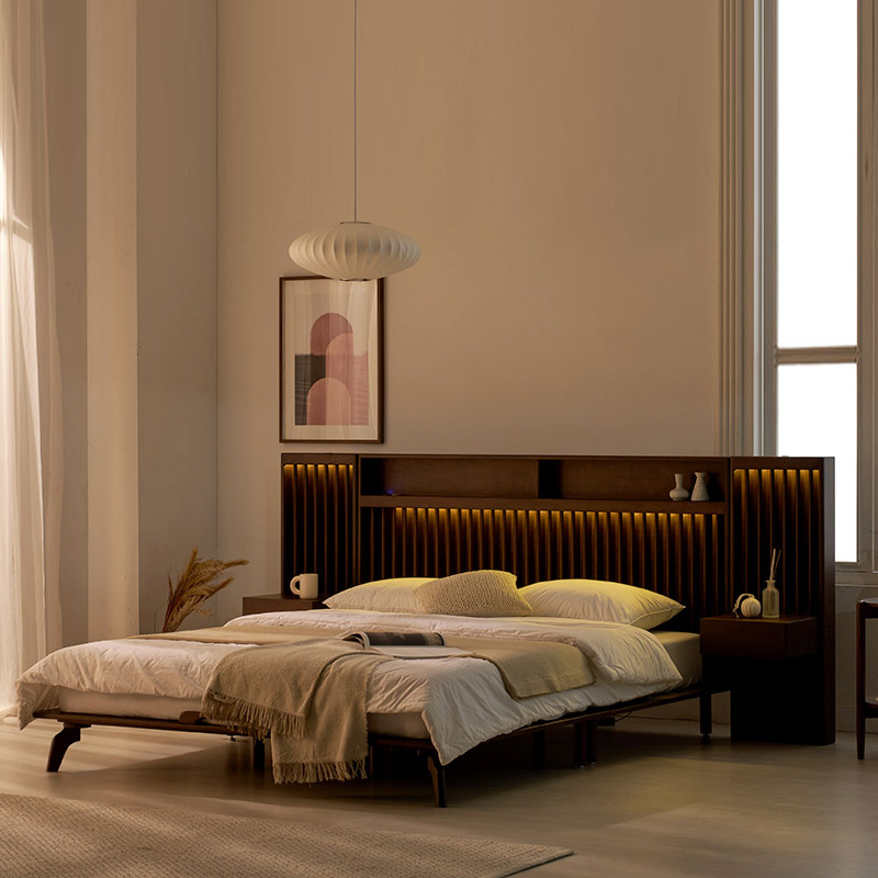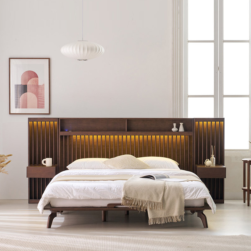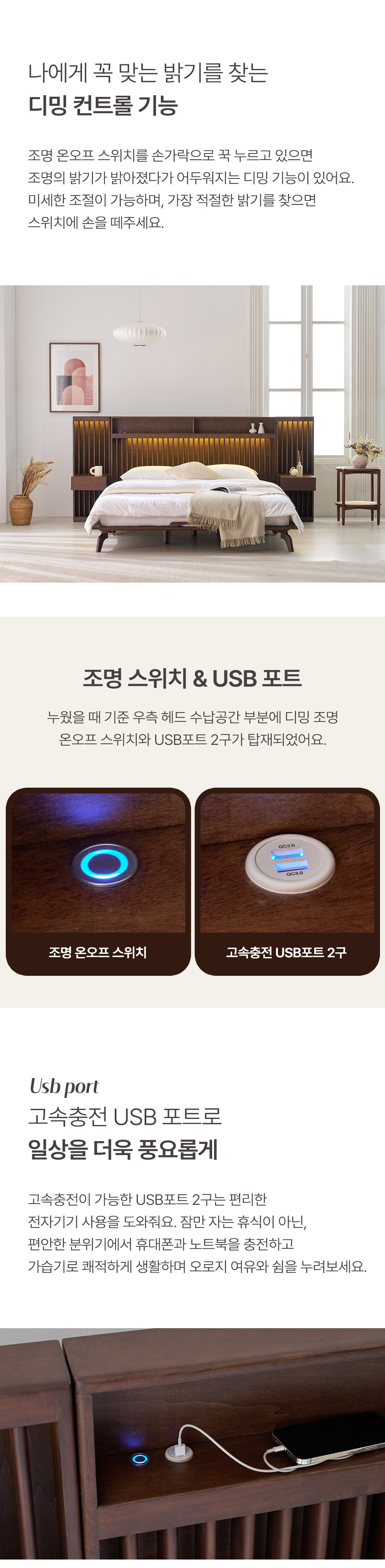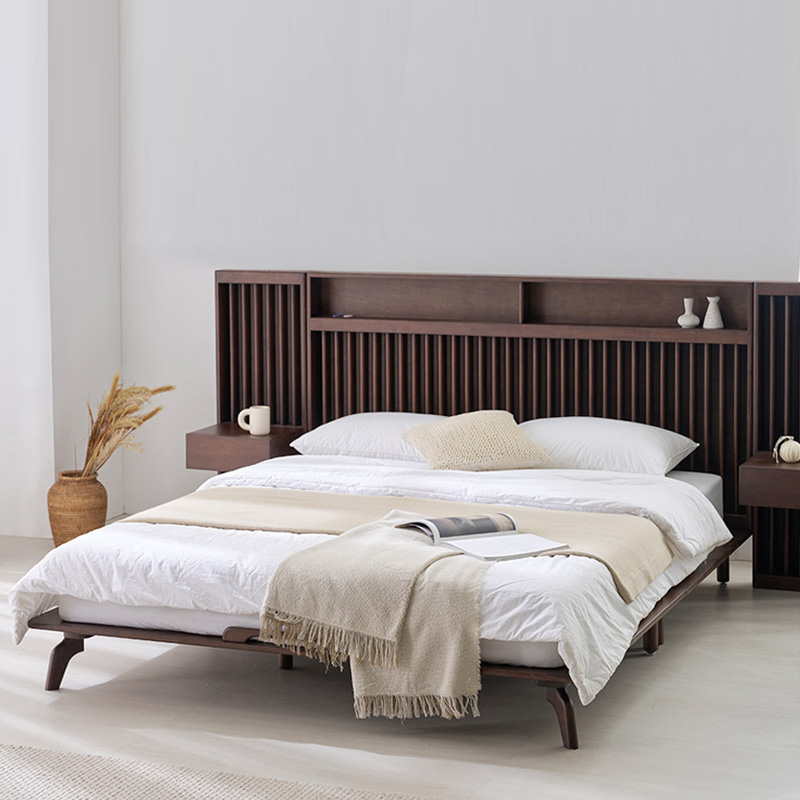 home > 원목가구 > 침대 > 퀸침대 > 로즈마리 갤러리 LED 고무나무 원목 Q/K, LK 침대