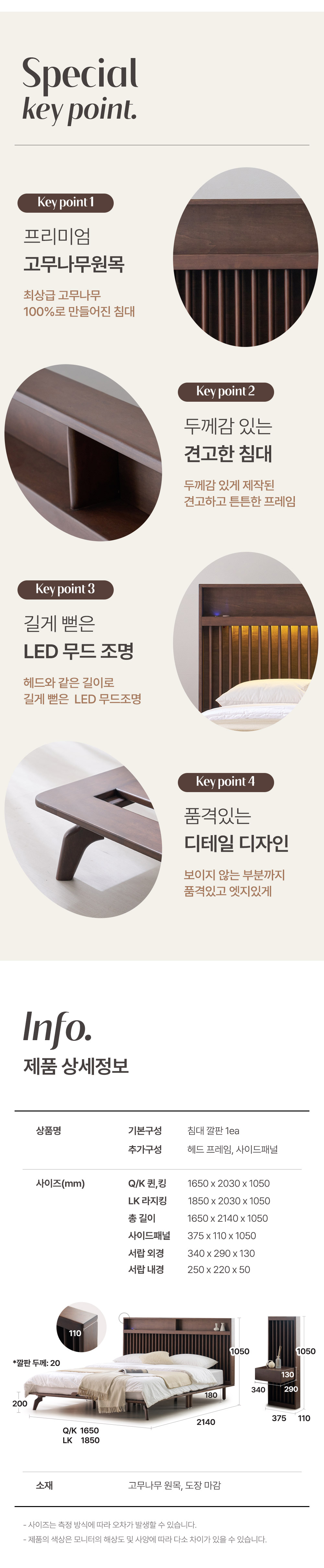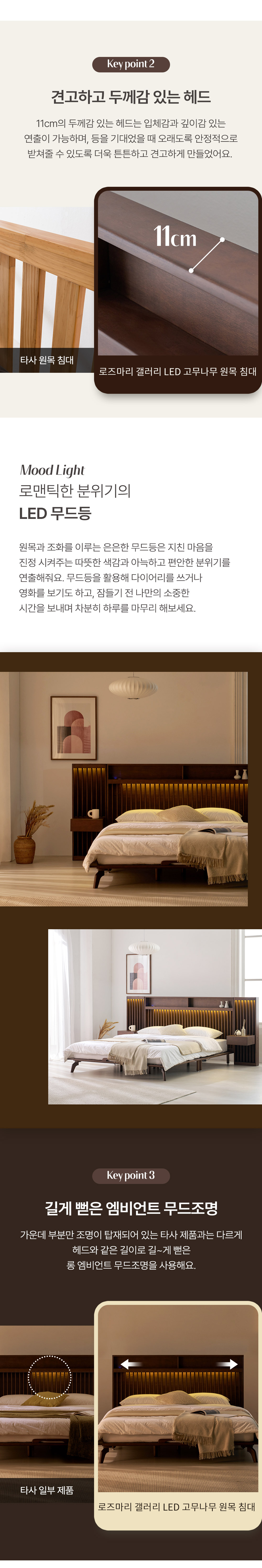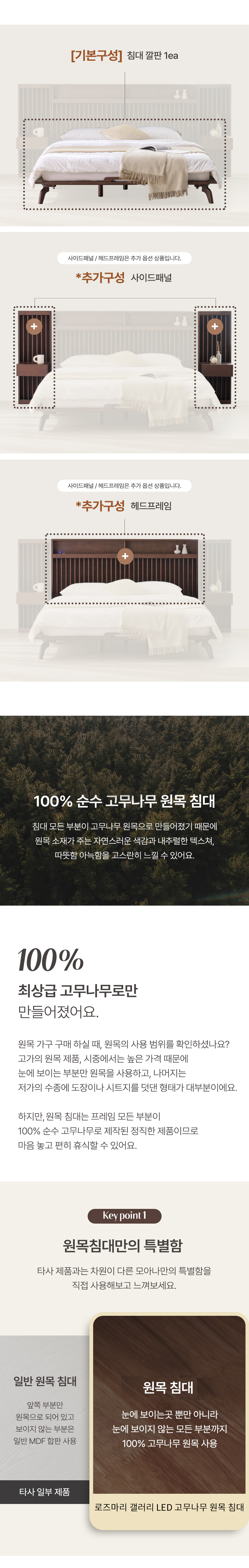 로즈마리 갤러리 LED 고무나무 원목 Q/K, LK 침대