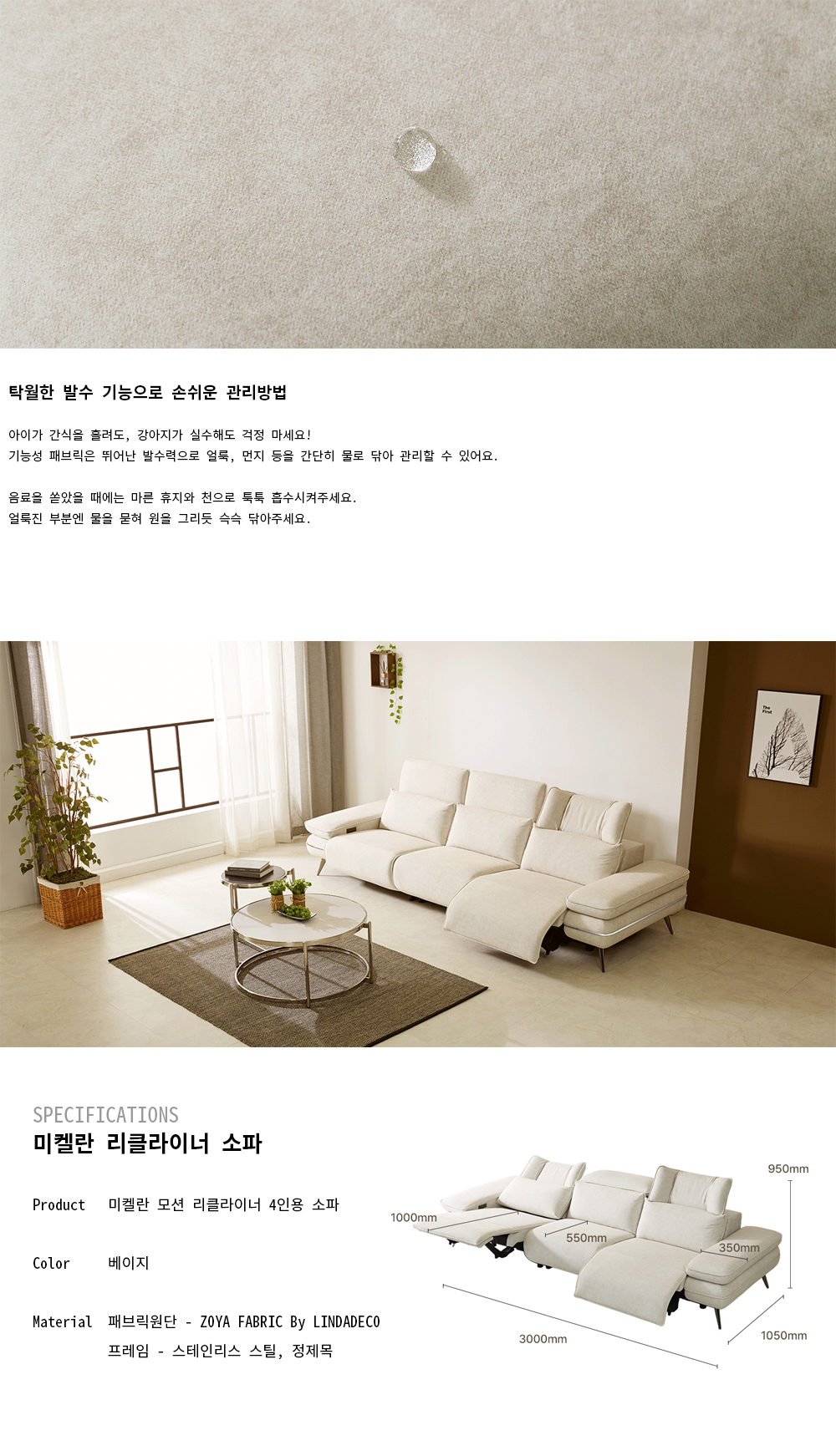 미켈란 모션 리클라이너 4인용 소파