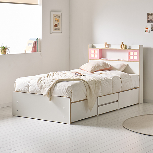 home > 침대 > 슈퍼싱글 > 스위스 LED조명 수납 서랍형 슈펴싱글침대 프레임