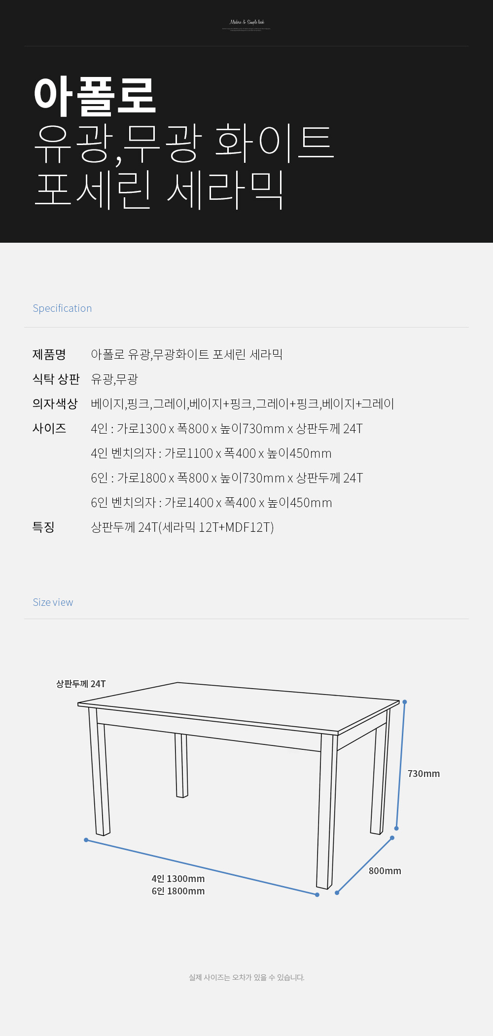 아폴로 유광,무광화이트 포세린 세라믹 4인,6인식탁